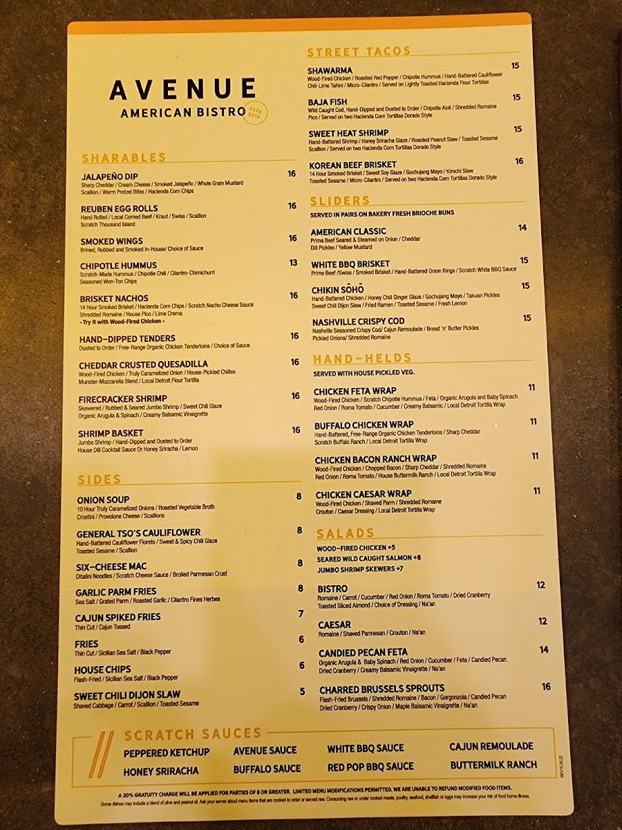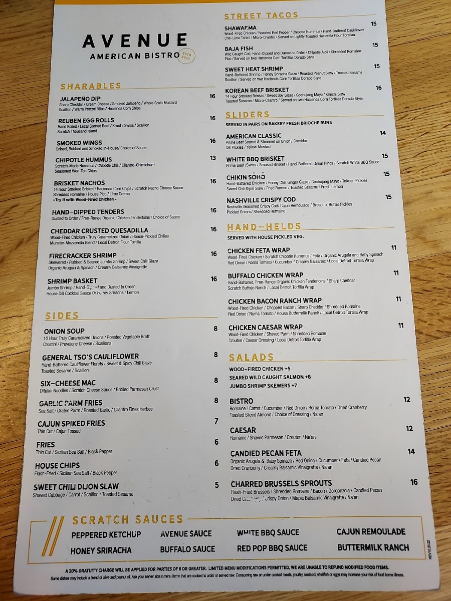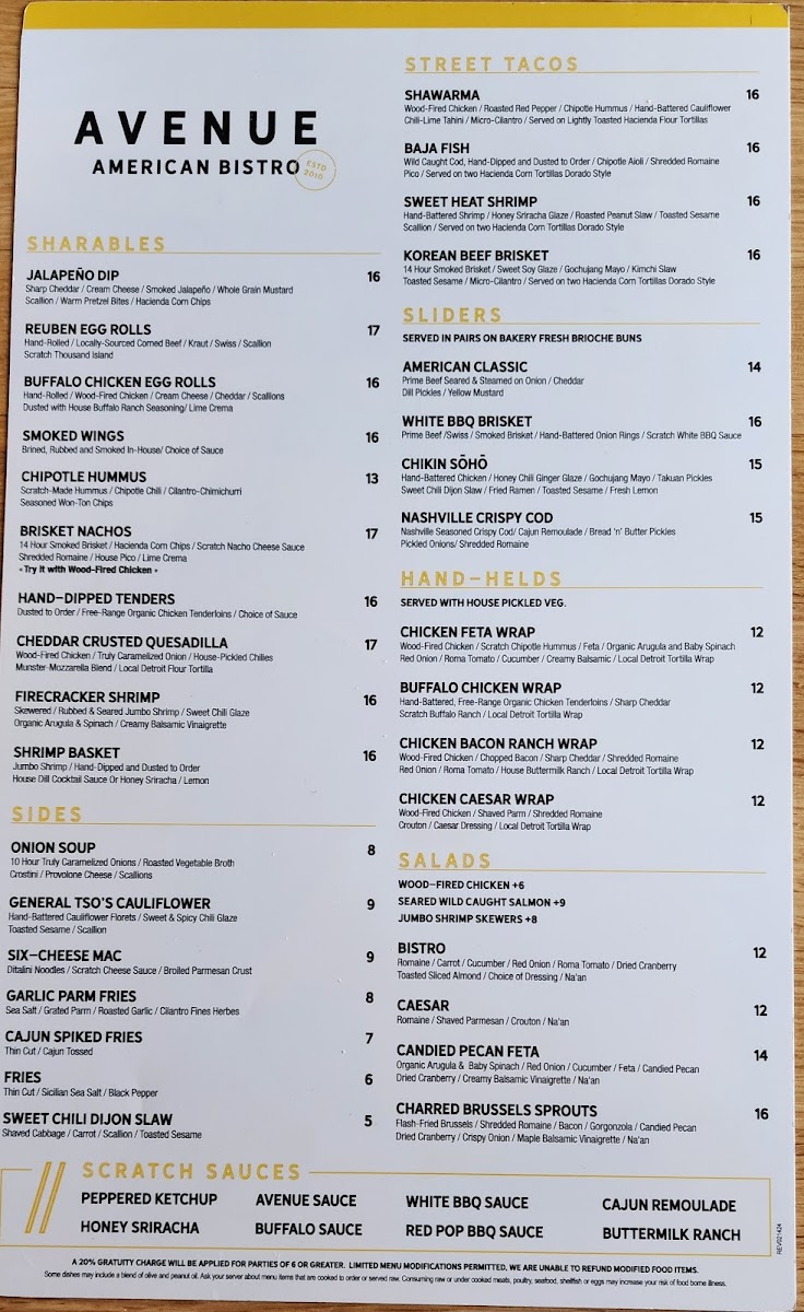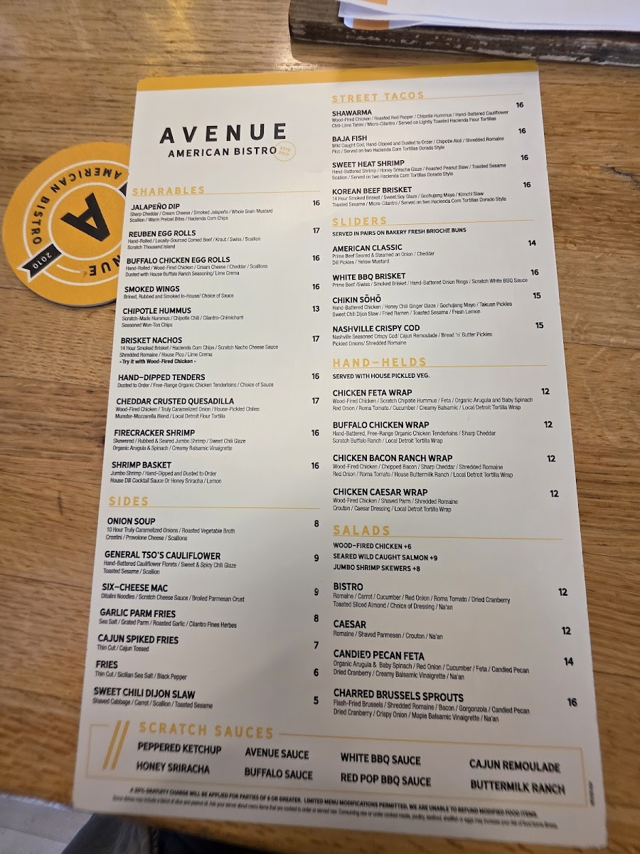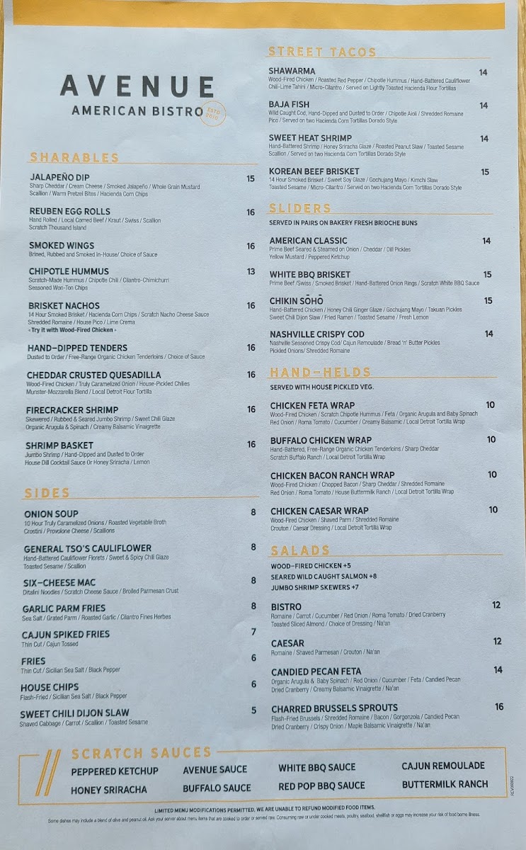 Avenue American Bistro Menu