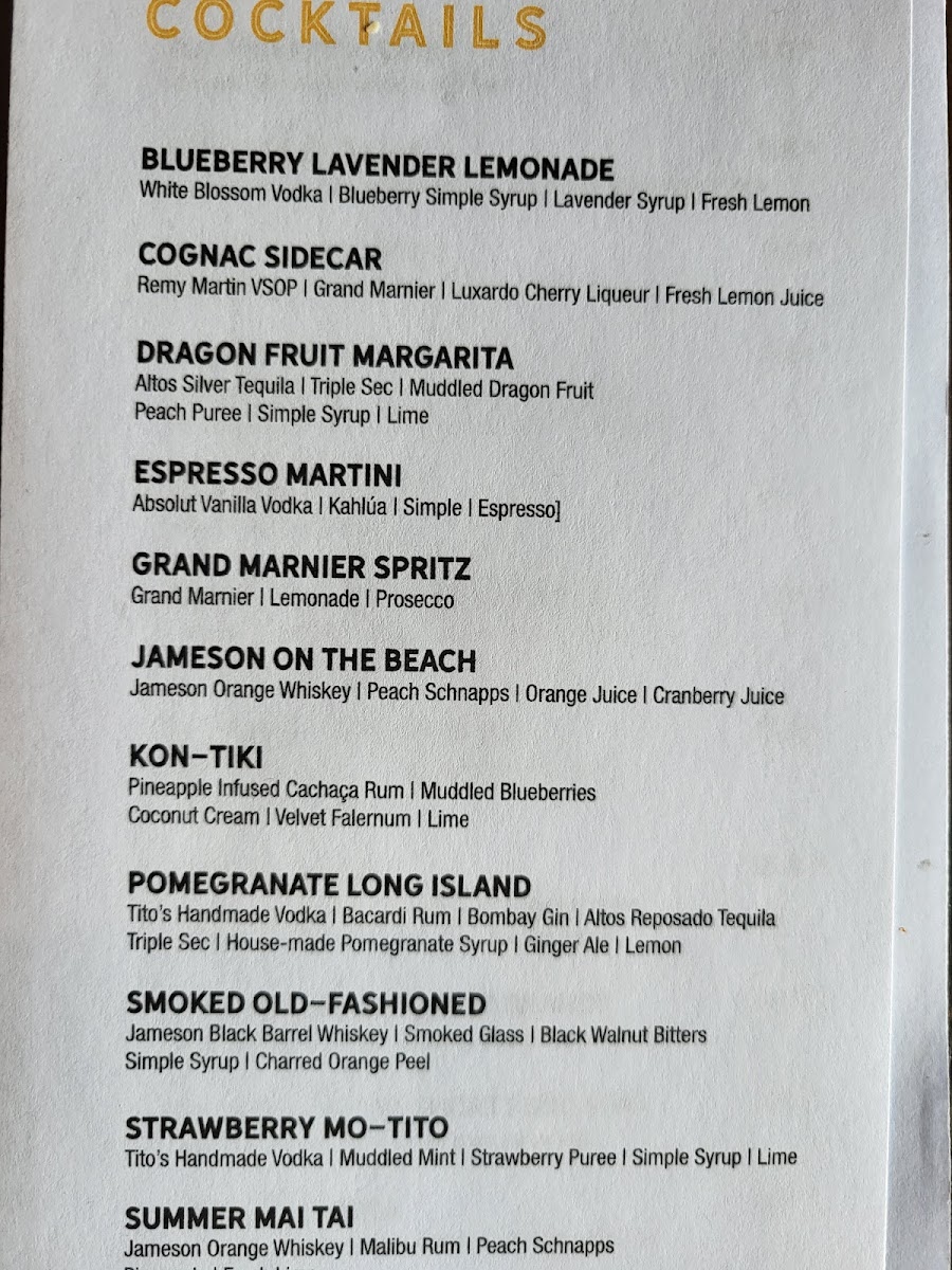 - Cocktails: A variety of mixed drinks designed to pair well with the menu items.